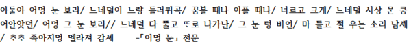 필자는 왠지 “마 들고 절 우는 소리 남셰/ ᄎᆞᄎᆞ 족아지멍 멜라져 감셰”라는 대목이 겹쳐 들린다. “장마가 지고 바닷물결 소리 나잖으냐, 차츰 작아지며 허물어져 가잖으냐”라는 구절을 읽는 순간, 어딘가에서 여전히 둘째딸을 바라보고 계실 어머니의 시선이 가슴 깊숙이 와닿는다.