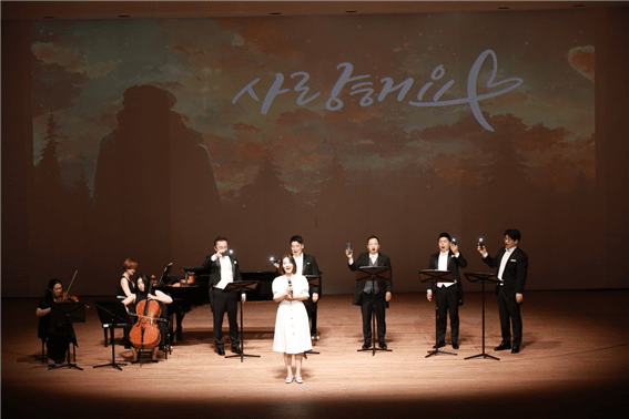 이처럼 ≪제주, 애(愛)≫는 대중과 가곡을 잇는 시간이었다. 시를 음악으로 풀어내고 제주어에 숨결을 불어 넣은 이 무대는 통상적 공연의 범주를 넘어선 하나의 문화적 실천 현장이기도 했다. 특히 무대 전반에는 다양한 음악적 장치들과 더불어 김효은 작가의 캘리그래피 영상이 더해져 시각적 예술성과 감성의 깊이를 한층 배가시켰다. 아울러 제주 4·3을 노래한 ‘섬의 연가’에서는 양정환 감독의 독립영화 ≪4월 이야기≫가 배경 영상으로 상영되어, 시와 음악 그리고 영상과 그림이 어우러지는 복합 예술의 형식을 완성해 냈다.