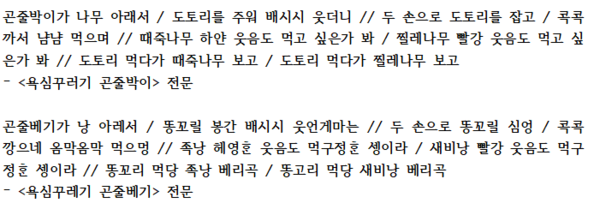 아이들은 이 동요를 따라 부르며 도토리와 때죽나무, 찔레나무를 친구처럼 부를 것이다. 말과 말 사이를 “배시시 웃언게마는” 하며 채워 갈 것이고, 교실 구석구석에도 ᄄᆞᆺᄄᆞᆺᄒᆞᆫ 봄처럼 스며들 것이다. 제주어의 감흥은 그렇게 웃음과 함께 전해지고, 노래는 아이들 마음에 살아 있는 언어로 피어난다. 곤줄베기 한 마리가 나무 아래서 배시시 웃는다. 그 웃음은 “똥꼬리” 하나 품은 동시 한 편에서 시작해 해 맑은 동요를 부르며 아이들 마음을 활짝 열어 줄 것이다.