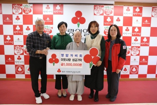 일붕선교종 영암사 영암자비회(주지 제법스님)는 최근 제주사회복지공동모금회(회장 강지언)를 방문해 이웃사랑 성금 100만원을 기탁했다.