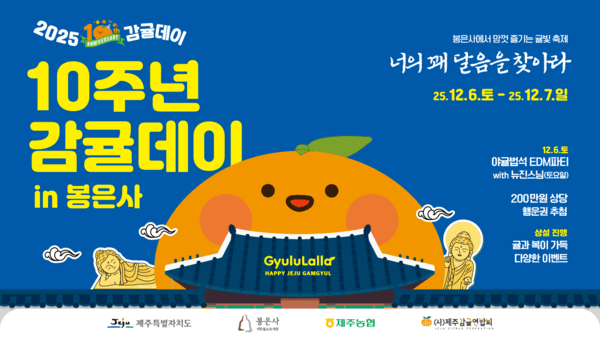 [미디어제주 홍석준 기자] 올해로 10주년을 맞는 감귤데이(12월 1일)를 맞아 오는 12월 6일과 7일 이틀간 서울 봉은사에서 감귤의 우수성과 매력을 알리기 위한 홍보행사가 열린다.